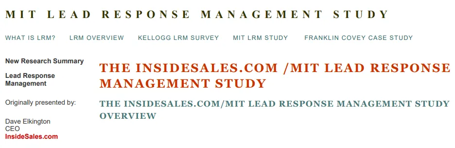 This study looks at the impact of speed to lead on conversion rate (cold lead to closed deal).