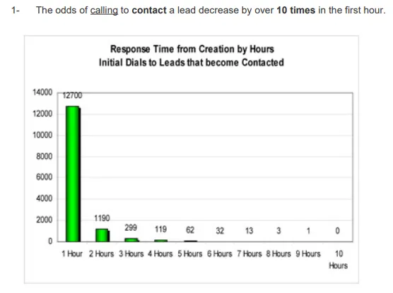 If you don't reach out to a lead within 5 minutes, there is a 100x less chance that they become a closed deal.